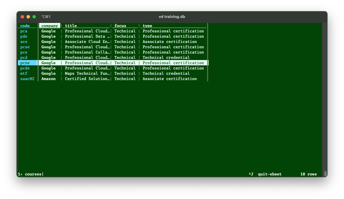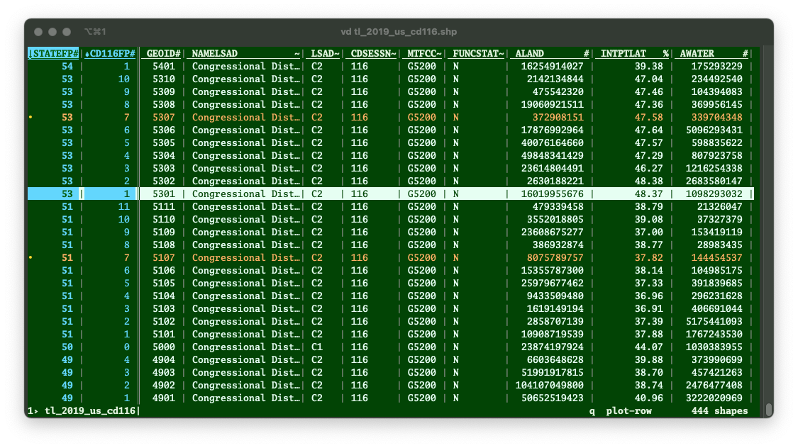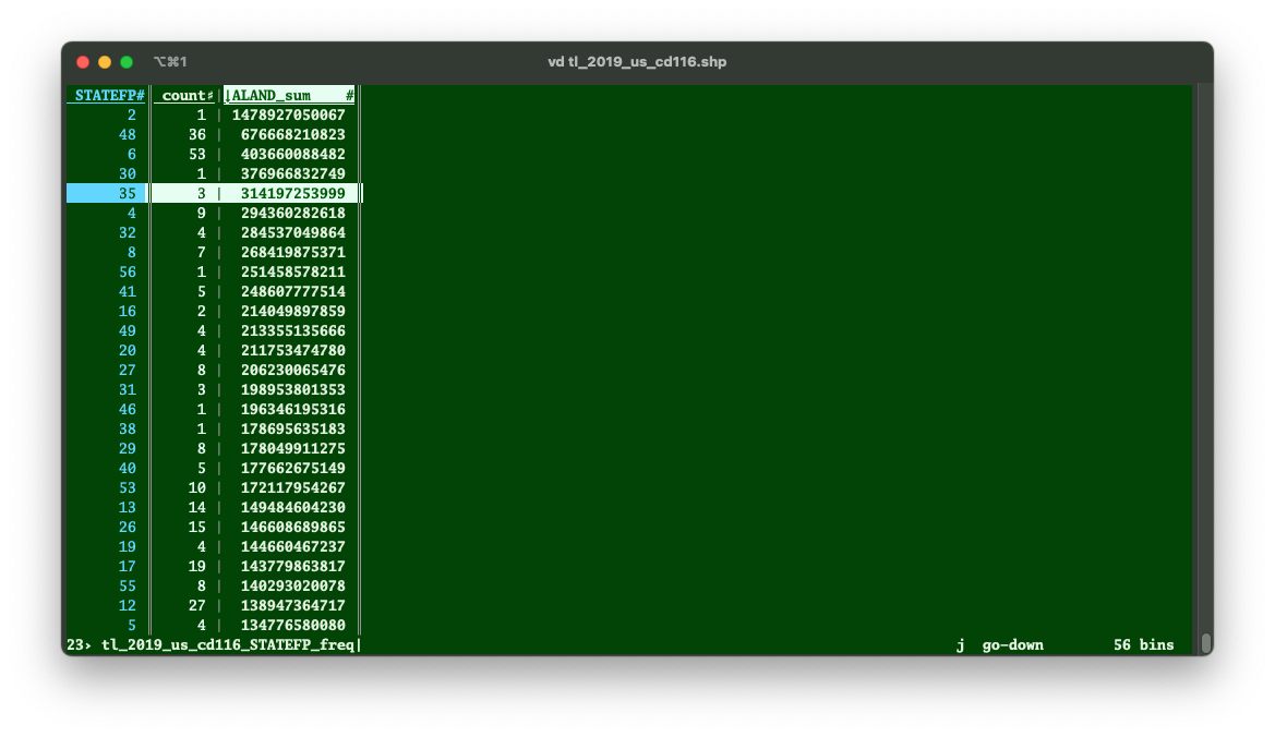 But what really blew my mind was the ability to select a row and type . (period) to get a preview of the feature…in a terminal window!