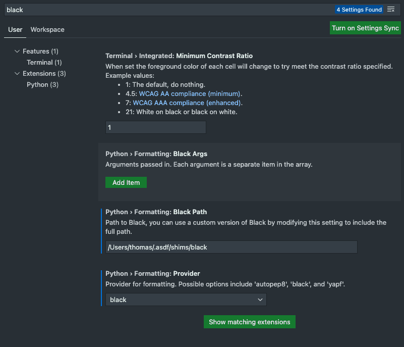 But regardless, you can then tell the Python extension in VS Code to use black as it’s code formatter.