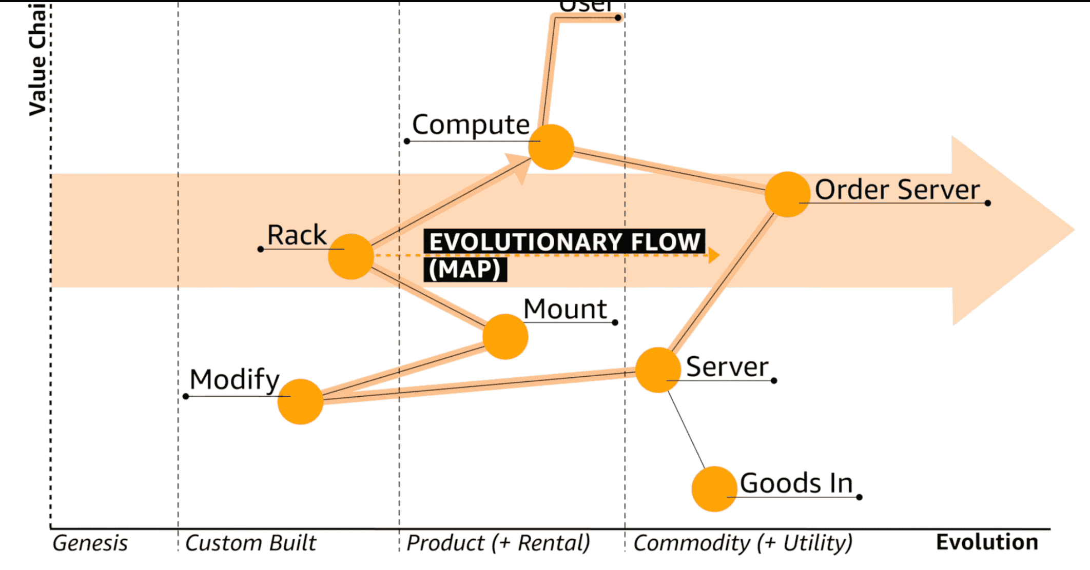 If you look carefully you’ll see that the Y axis is not labeled User Visibility it’s labeled Value Chain. It’s OK to rename axes to better reflect the context of the map, but user centricity is the point.