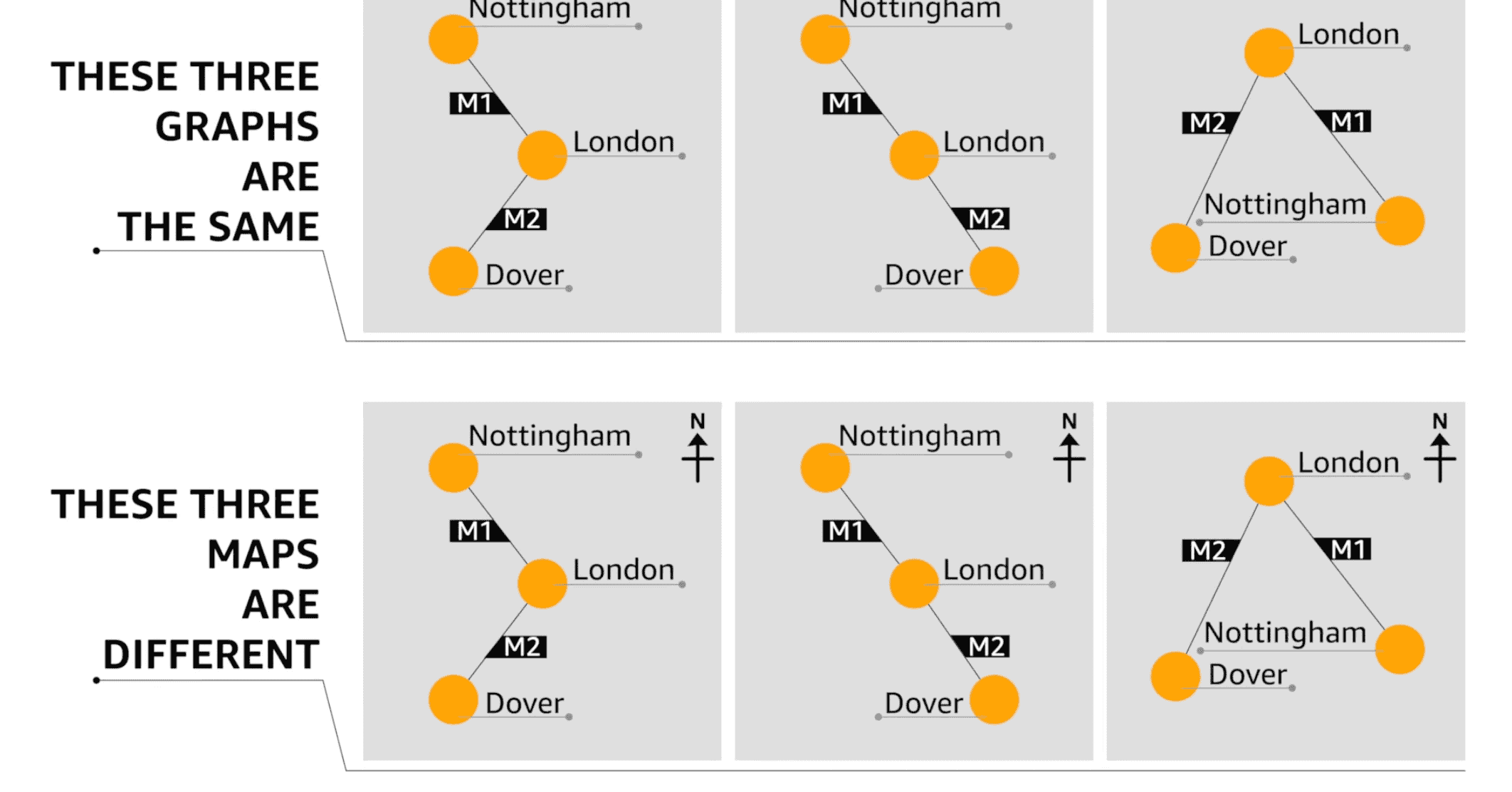 The fundamental difference between a map and a graph is that in a map, space has meaning.