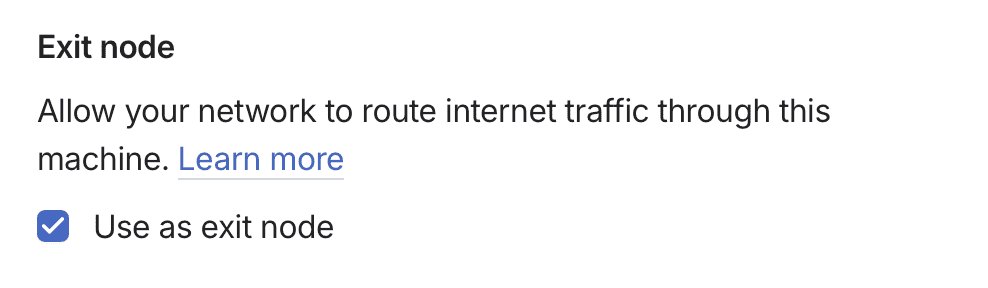- Click the checkbox for Use as exit node and give it a few seconds to propagate.